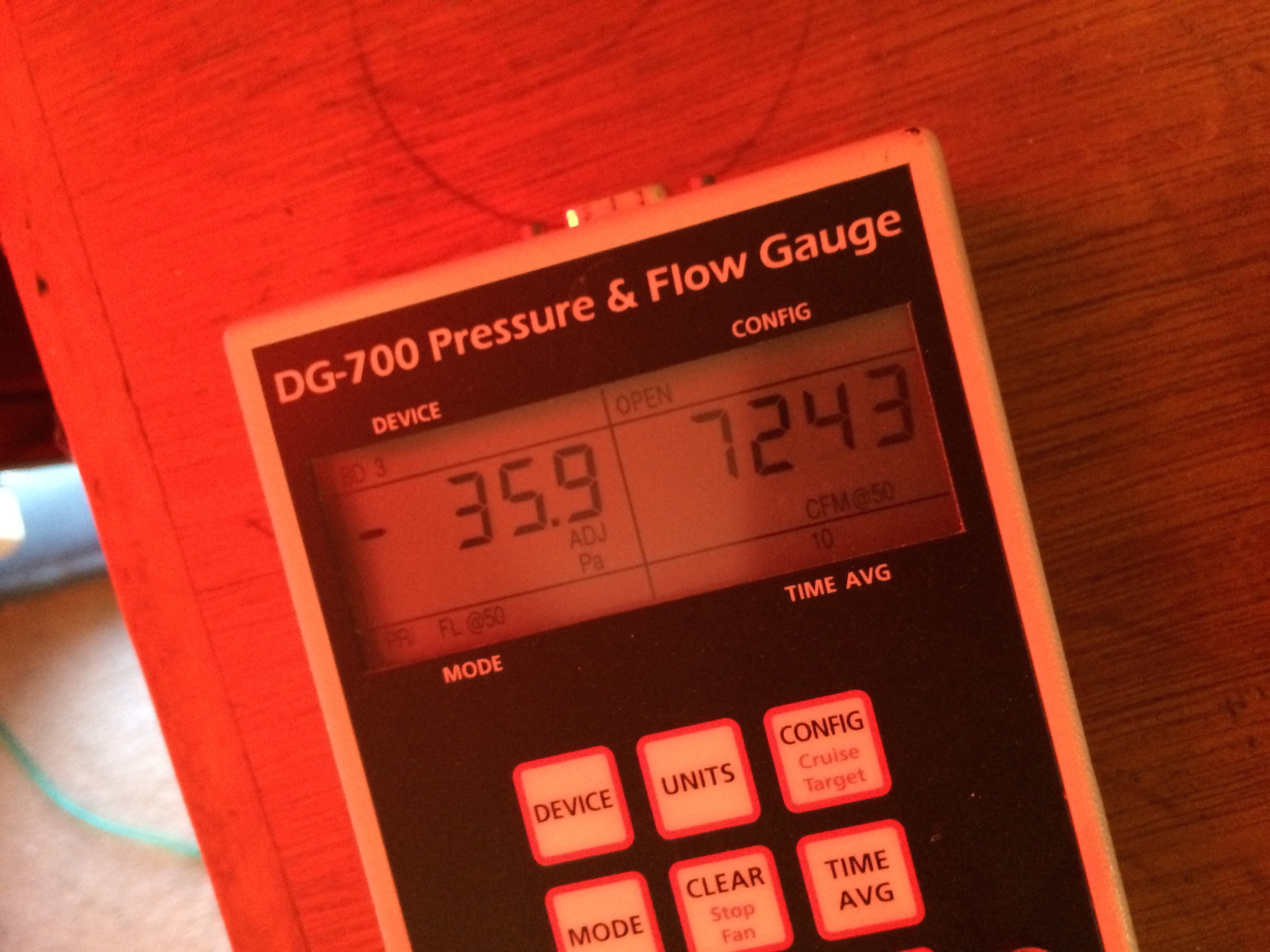 Once everything was set up, the test went really quickly. And the results were pretty much as we all expected – the house as it stands today is very, very drafty! Now, the actual test result is here:
